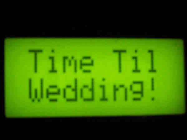 As of now, this clock has three different screens you can scroll through (The "Time Til Wedding" screen flashes for a second before the next screen comes up).