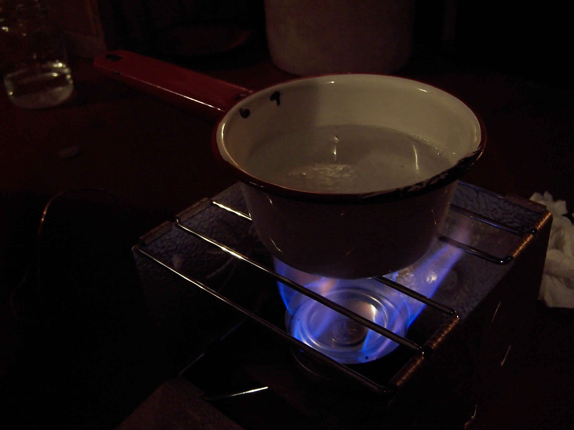 The stoves burn denatured alcohol and burn for an incredibly long time. Evan found the directions online and I can include a link soon. They only take a couple of minutes to construct and are cheap as free. To transport the fuel, I bought a really cool fuel bottle from rei. I believe that I was able to get this first attempt stove to burn for roughly 15 minutes on one fill of fuel.