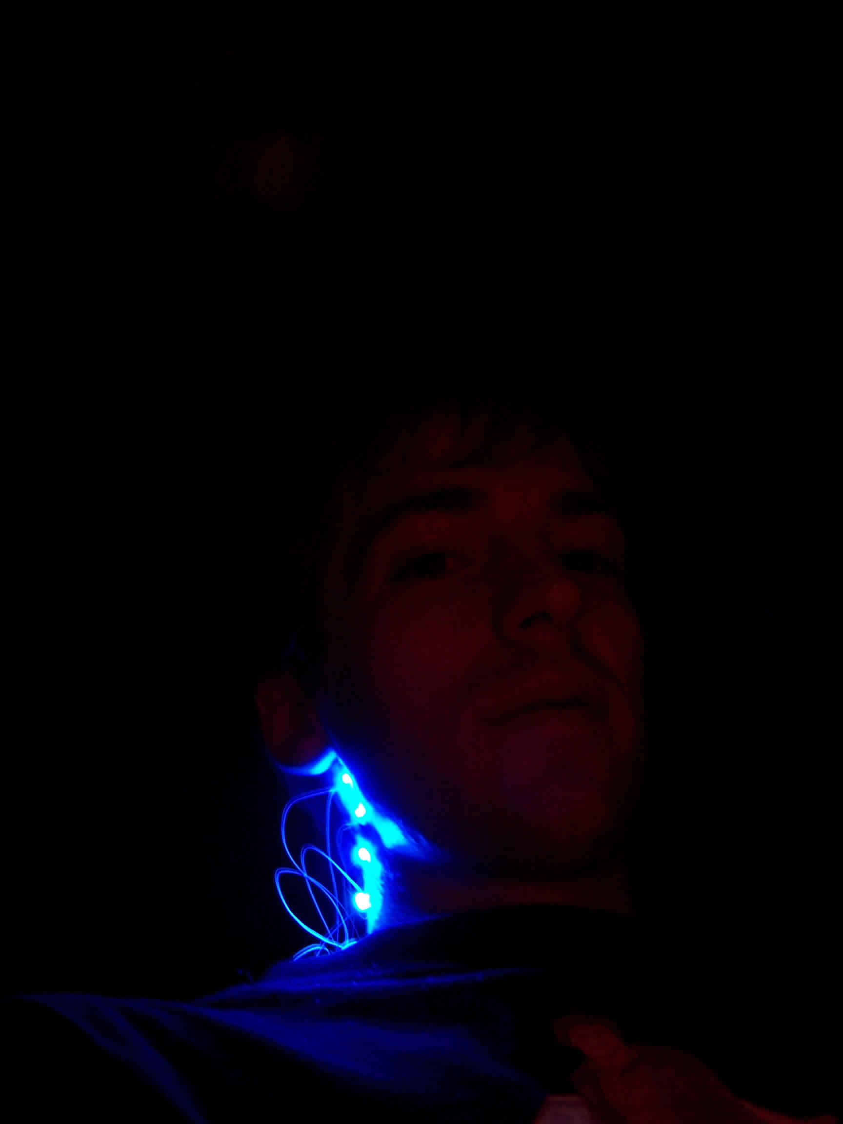 Mom and david brown used tons of crazy glue to attach each led to my neck. The wire was white wire wrap wire.